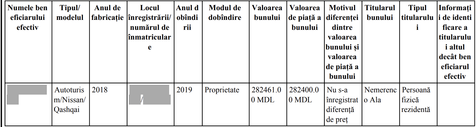 Astfel, conform declarației depuse la ANI, membra PAS a indicat că locuiește într-un apartament de circa 420.000 de lei, moștenit în 1992 și conduce o mașină marca Nissan Qashqai, cumpărată în 2019 cu aproximativ 282.000 de lei.