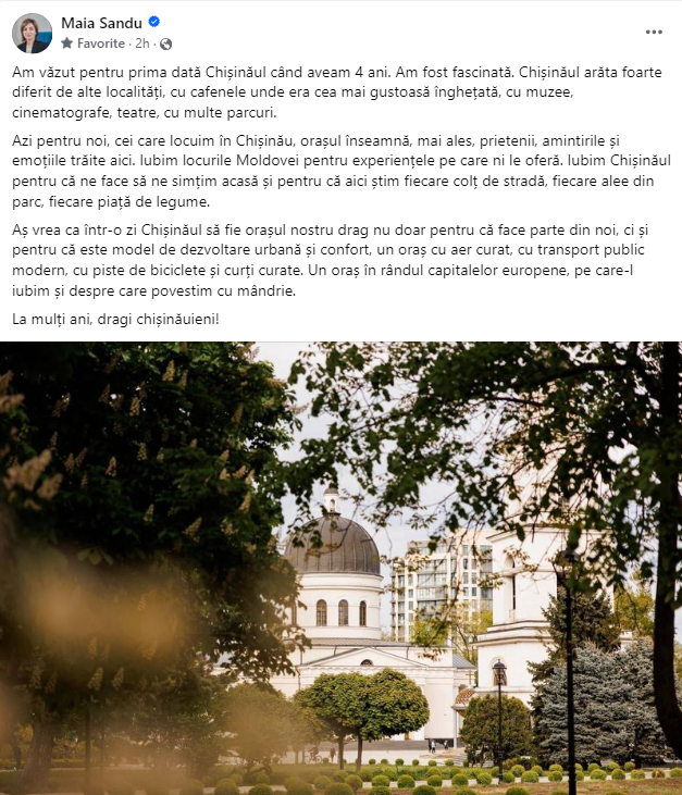 La mulți ani, dragi chișinăuieni!”, a menționat Președina Maia Sandu.