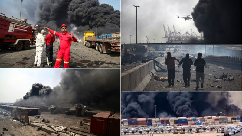 În timp ce echipajele încercau să stingă incendiile, oficialii de la vama portului au afirmat că din zonă sunt evacuate camioanele şi că zona de containere unde a avut loc explozia conţine, cel mai probabil, ”mărfuri periculoase şi substanţe chimice”. Activităţile din port au fost oprite după explozie, afirmă oficialii.