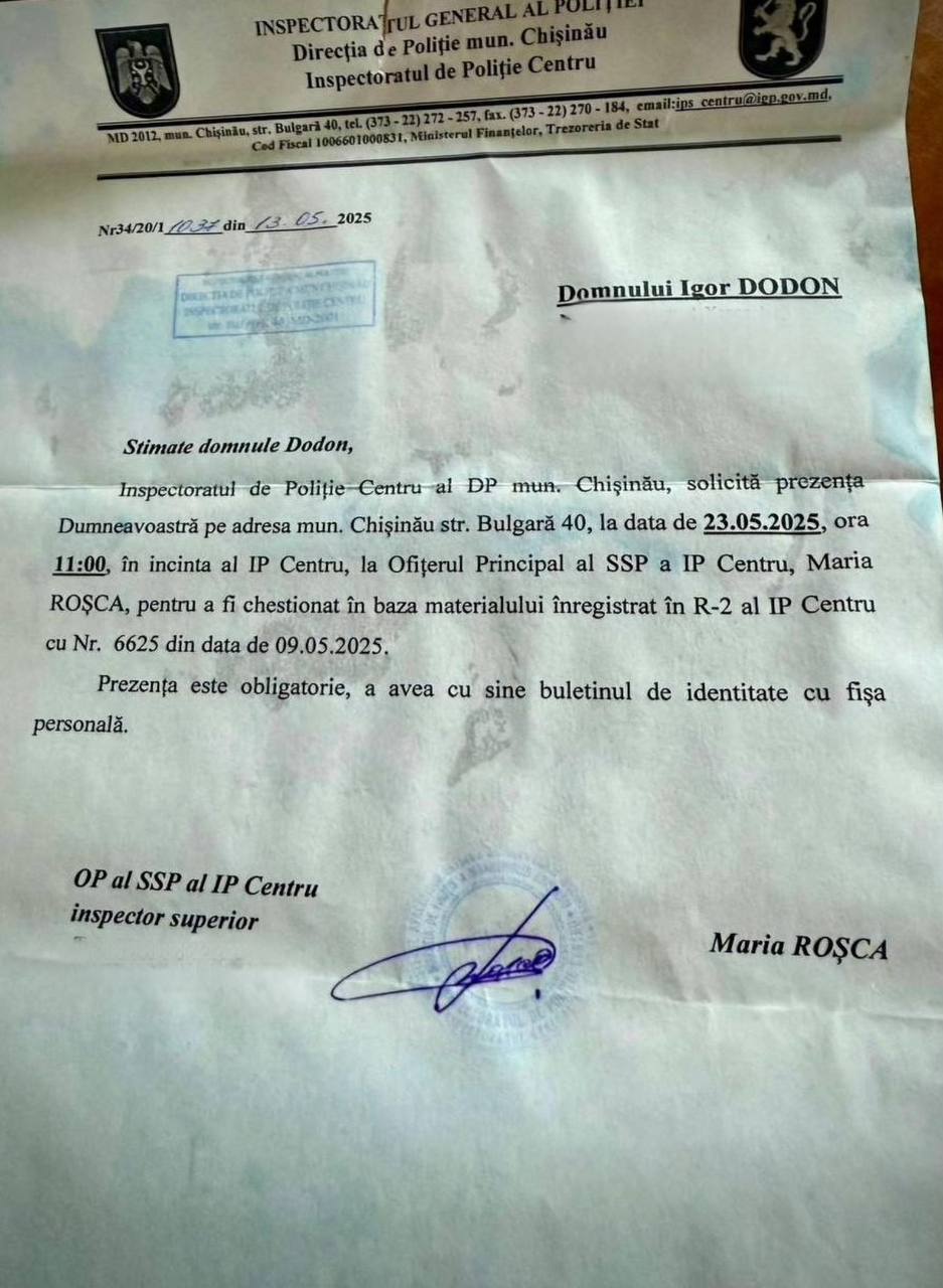 „Am primit o „invitație” să mă prezint la secția de poliție. Vor să mă interogheze despre motivul pentru care am fost la Marșul Victoriei de la Chișinău pe 9 mai purtând panglica Sfântului Gheorghe. După venirea la putere a Maiei Sandu, amenda pentru purtarea panglicii Sfântului Gheorghe în Moldova pentru persoane fizice variază de la 4.500 la 9.000 de lei (de la 260 la 520 de dolari).