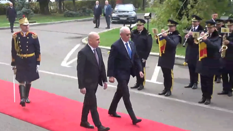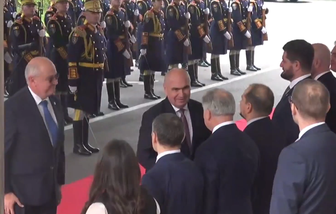 Premierul României, Ilie Bolojan, l-a întâlnit cu fanfara și covor cu piedestal roșu pe șeful Guvernului de la Chișinău.