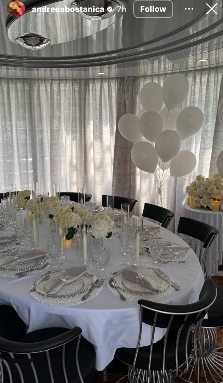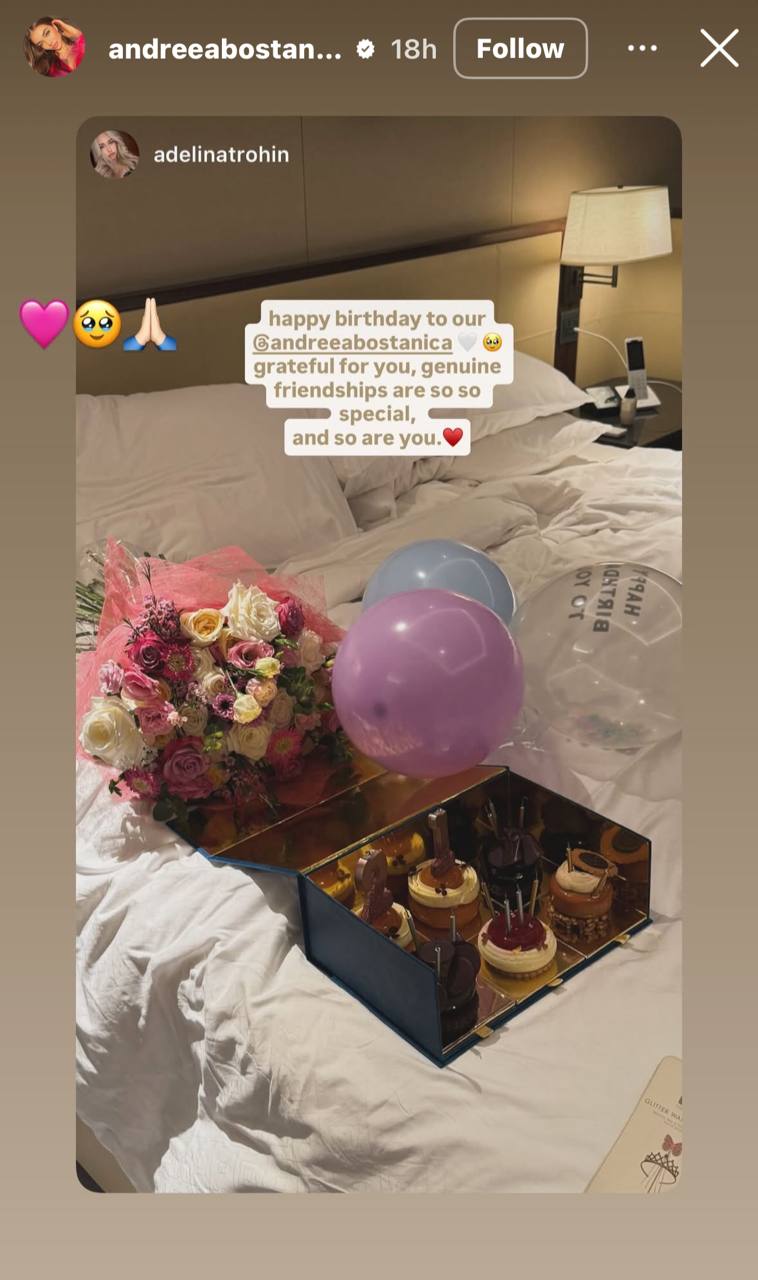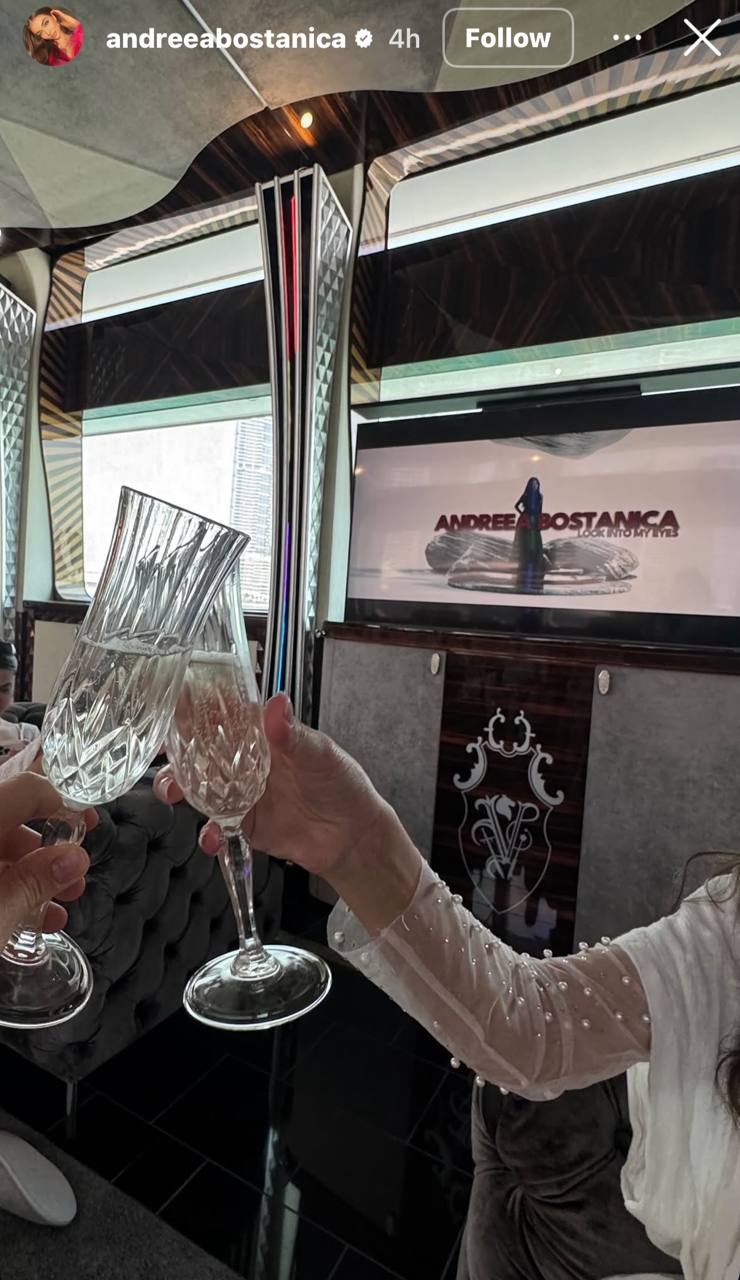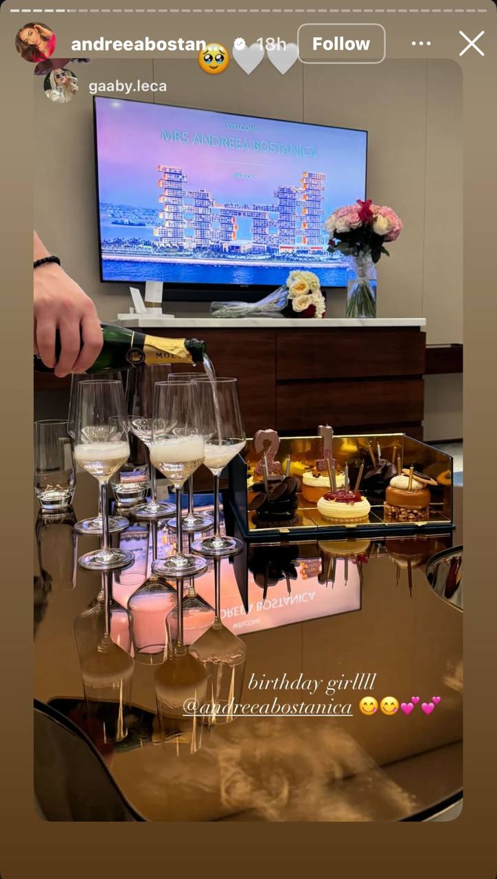 La miezul nopții, prietenele Andreei i-au făcut primele felicitări, au ciocnit șampanie și s-au bucurat de atmosfera de sărbătoare. Acestea au surprins-o cu flori și baloane.