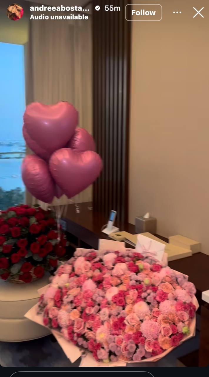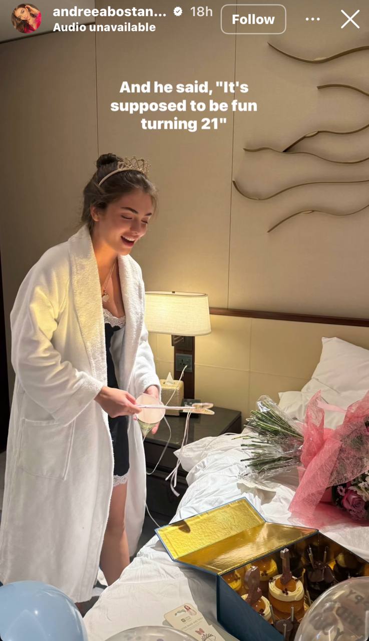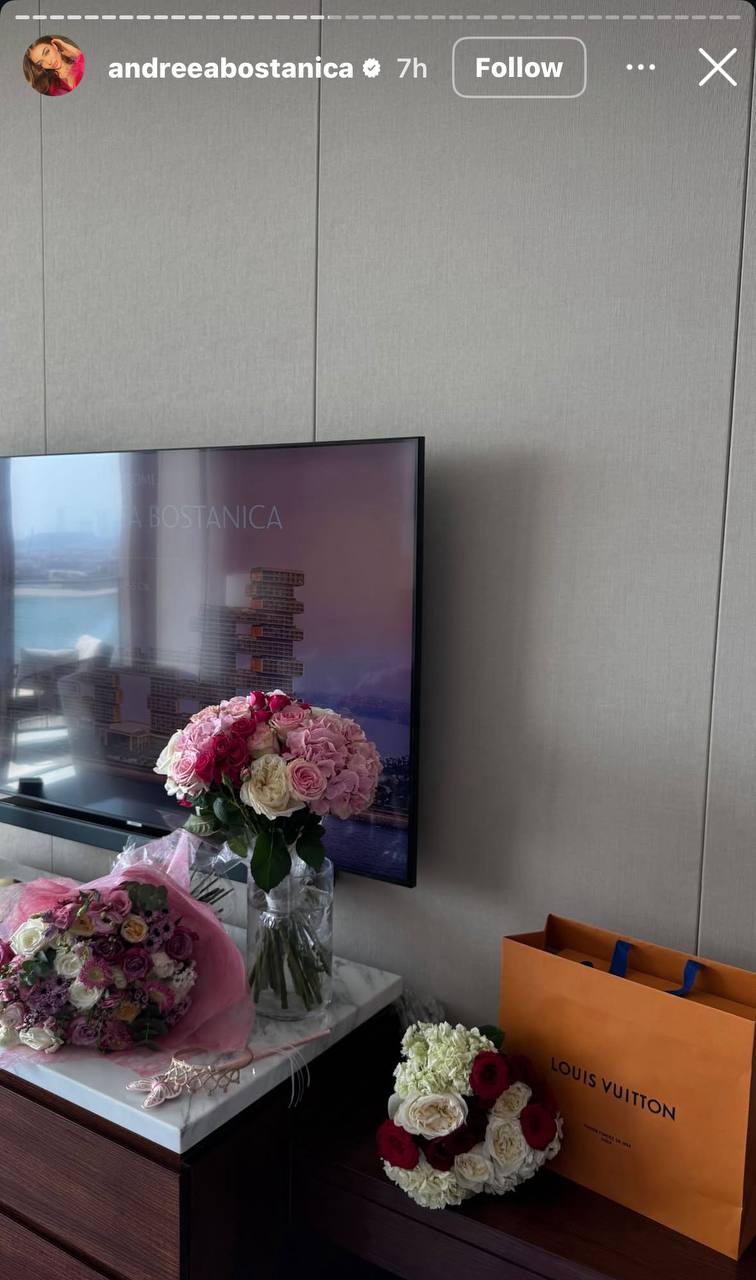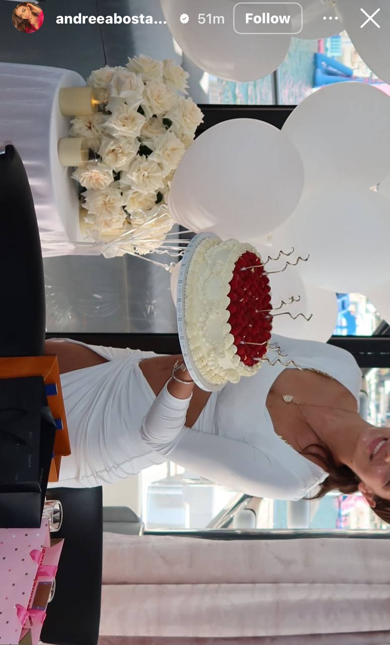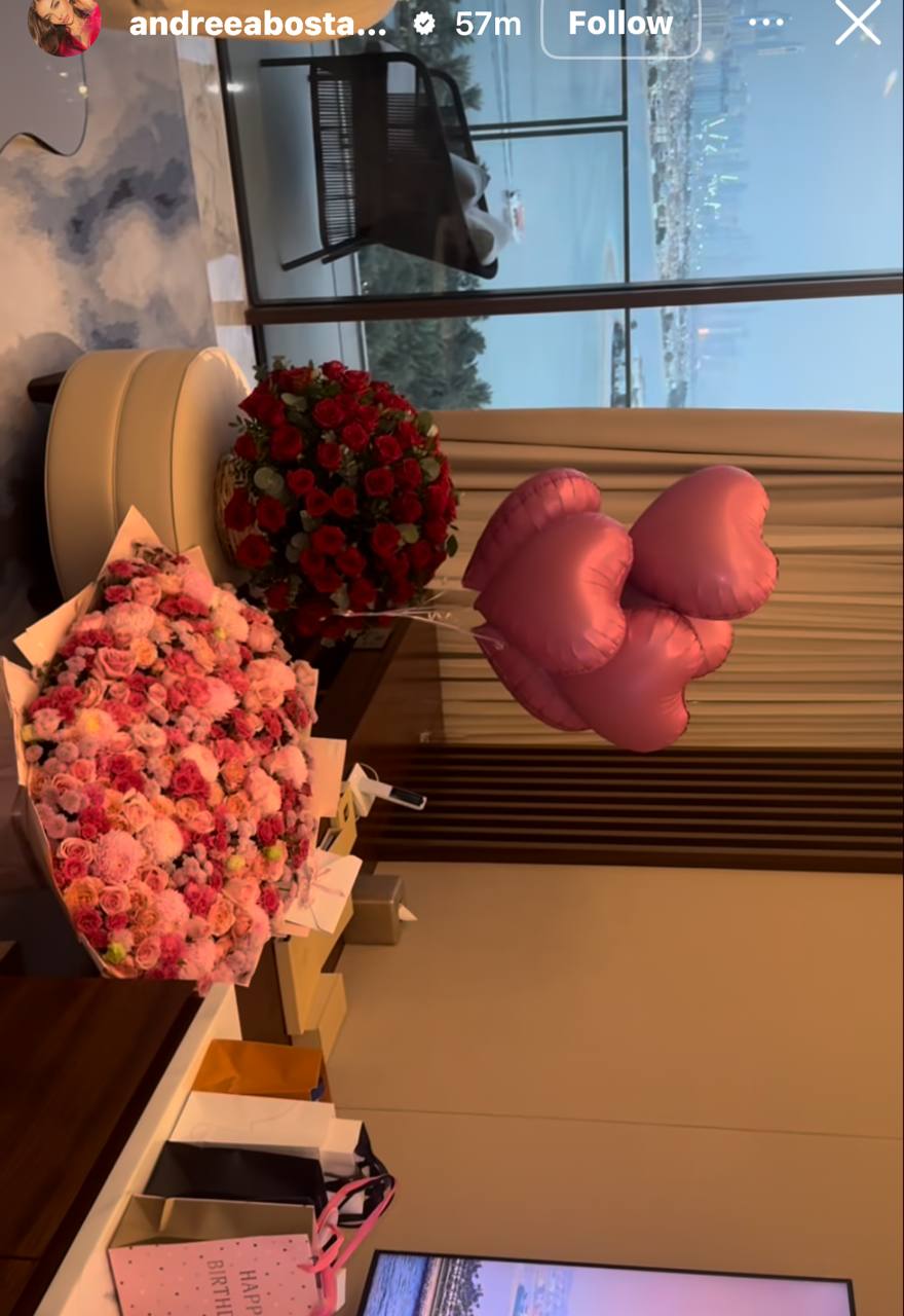 La miezul nopții, prietenele Andreei i-au făcut primele felicitări, au ciocnit șampanie și s-au bucurat de atmosfera de sărbătoare. Acestea au surprins-o cu flori și baloane.
