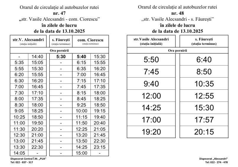 Pentru informații suplimentare, cetățenii pot contacta dispeceratul Parcului Urban de Autobuze la numărul de telefon 022 837 317.