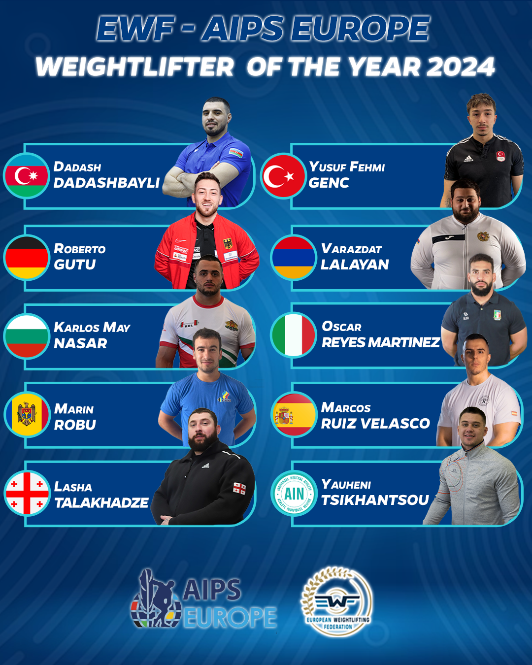 Potrivit Federației Europene de Haltere, sunt nominalizați 10 sportivi: