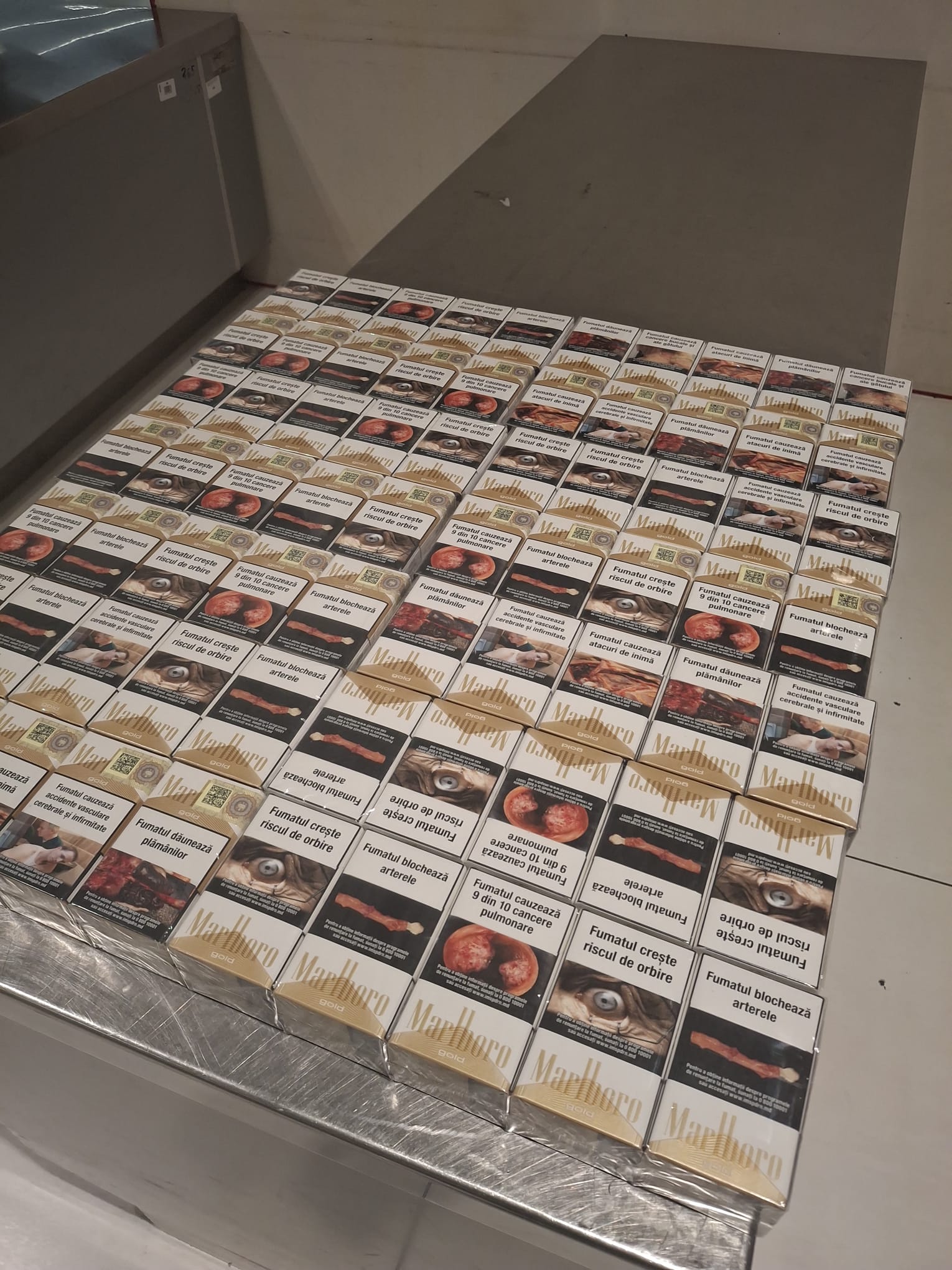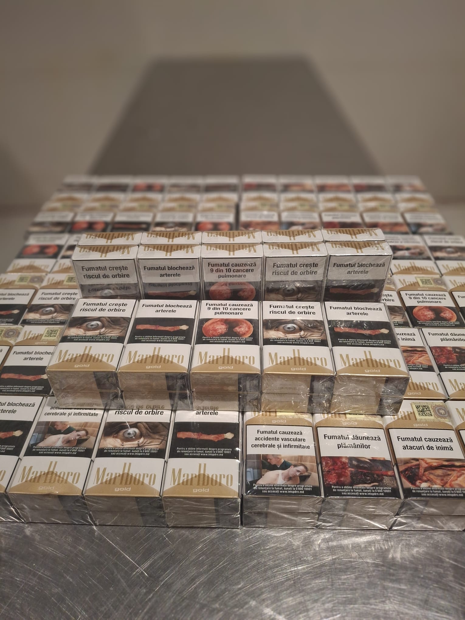 Echipa de control a efectuat un control fizic detaliat al bagajului, descoperind țigaretele marcate cu timbru de acciz al Republicii Moldova.