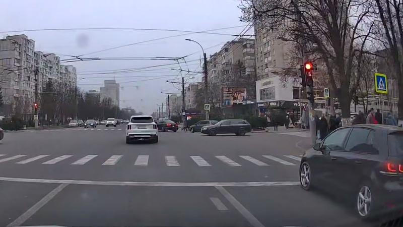 Un șofer grăbit a ignorat semnalul roșu al semaforului și a creat o situație de accident pe bulevardul Moscova, la intersecția cu strada Miron Costin din sectorul Rîșcani ai capitalei.