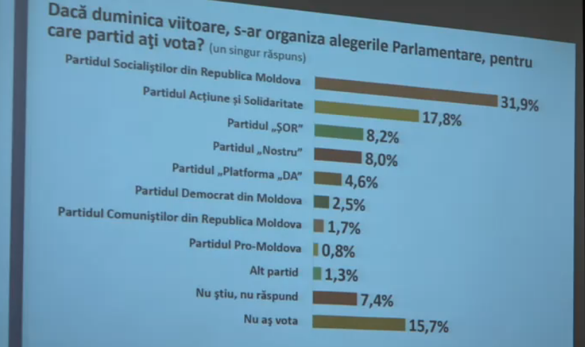 Astfel, 31,9 % dintre respondenți au răspuns că ar vota pentru PSRM, iar 17,8% pentru PAS.