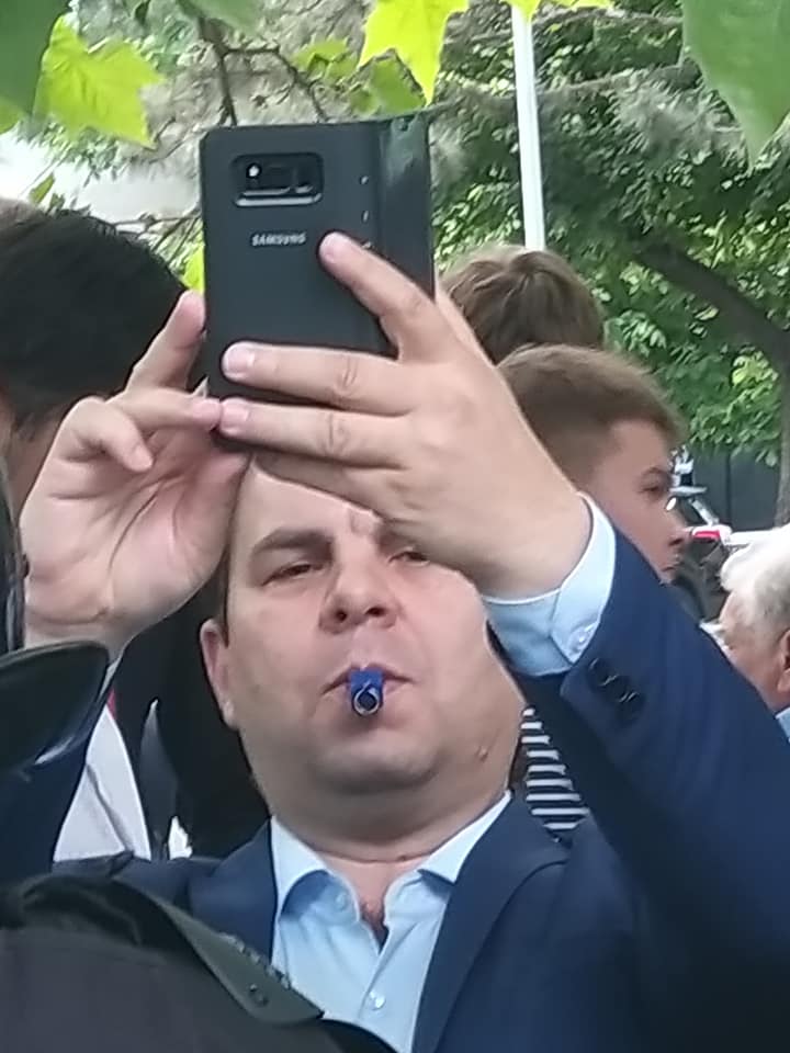 „La ”contramanifestația” PD-ului de astăzi, a fost prezenta această persoană cu şuierat (свисток). Era om important pe acolo, coordona mai multe chestii. Haideți să-l identificăm. Nu de alta, dar noi, cei de la ACUM, trebuie să știm ”fanii” care doresc cu tot dinadinsul să ne convingă să mergem la guvernare cu PD-ul”, scrie Litvinenco pe pagina sa de Facebook.