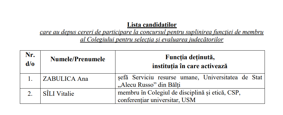 Decizia a fost adoptată cu 9 voturi „pro” și 2 „împotrivă”, ambii candidați care au participat la concurs, Ana Zabulica și Vitalie Sîli, fiind declarați câștigători.