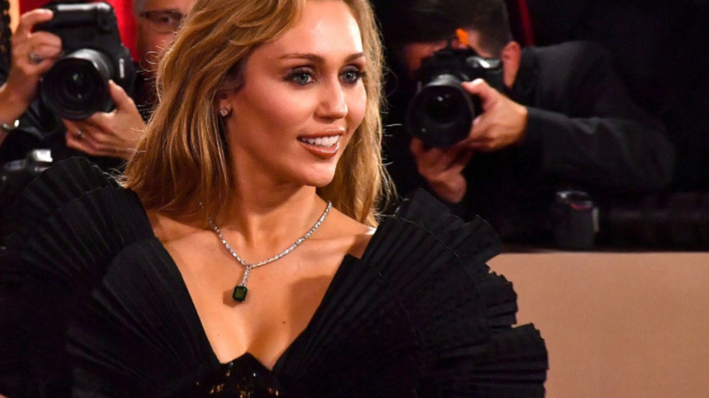 Accesorizarea a fost la fel de spectaculoasă. În jurul gâtului, Miley a purtat un colier masiv cu diamante, în centrul căruia se afla un smarald impresionant de peste 15 carate. Cerceii și inelele, toate semnate Tiffany & Co., au completat un look opulent, care a combinat eleganța clasică cu un aer rebel specific artistei.
