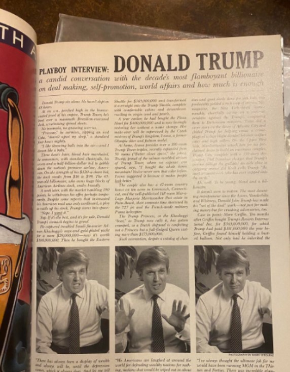 Donald Trump nu a avut vreo apariție indecentă în PlayBoy, ci a oferit un interviu pe care publicația Daily Star îl numește „controversat”, intitulat „o conversație sinceră cu cel mai extravagant miliardar al deceniului despre încheierea de afaceri, autopromovare, afaceri mondiale și cât de mult este suficient”.