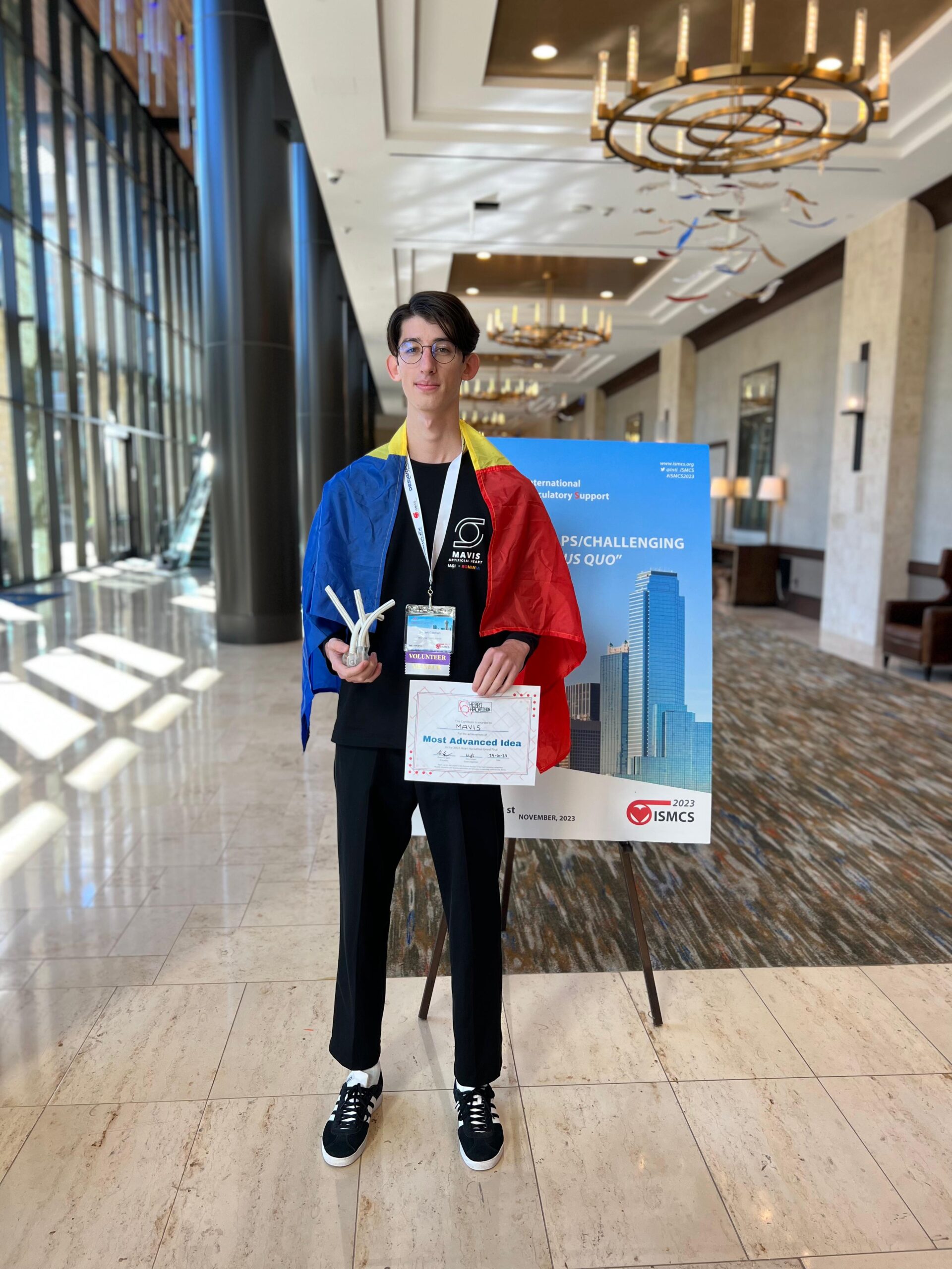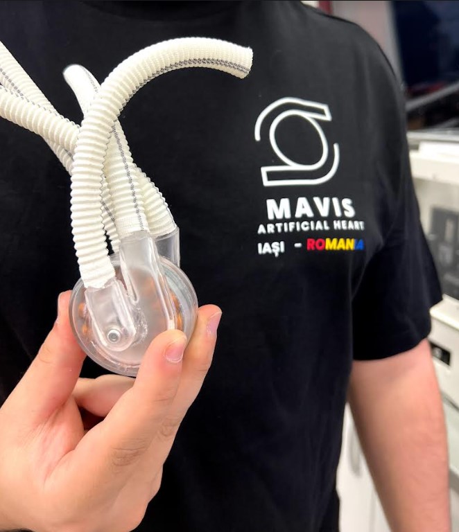 “Inima Artificială Mavis este concepută pentru pacienții cu insuficiență cardiacă avansată ce sunt în așteptarea de transplant de cord. Ea înlocuiește ventriculele pacientului și preia funcția de pompare a sângelui. Am realizat un dispozitiv durabil, avansat, mic, ce poate fi implantat atât la adulți cât și la copii. Spre deosebire de dispozitivele de pe piață, intenționăm să oferim un nivel de autonomie și confort pacientului, prin alimentarea wireless a inimii artificiale, astfel pacientul nu va avea nici un cablu care să îi între în torace, prezența căruia reprezintă sursa majoră de infecții și complicații. Anul trecut, rolul meu în echipă a fost de a face designul pompelor și testarea lor în mediu virtual, așa cum Inima Mavis prezintă 2 pompe radiale puse în mișcare de un motor ce levitează magnetic, dimensiunea totală fiind de aproximativ 360 cm³ sau 60/60/100 mm. Cu acest dispozitiv am participat la Heart Hackathon, prima competiție internațională ce are ca scop dezvoltarea unei inimi artificiale. Finala concursului a avut loc în Dallas, SUA, unde am obținut Premiul Special pentru “Cea mai Avansată Idee”. Experiența în America a fost ceva extraordinar, așa cum am fost apreciați de către marii producători și experți în domeniul inimilor artificiale. Este un sentiment minunat să îți vezi munca recunoscută de către acești profesioniști. Și echipa noastră chiar a muncit mult, în ultimele săptămâni dinaintea plecării în America lucram până la 1-2 noaptea pentru a optimiza dispozitivul. Și s-a meritat. Totuși mai avem mult de lucru până când inima noastră va fi implantată și proiectul nostru este în continuă dezvoltare.”