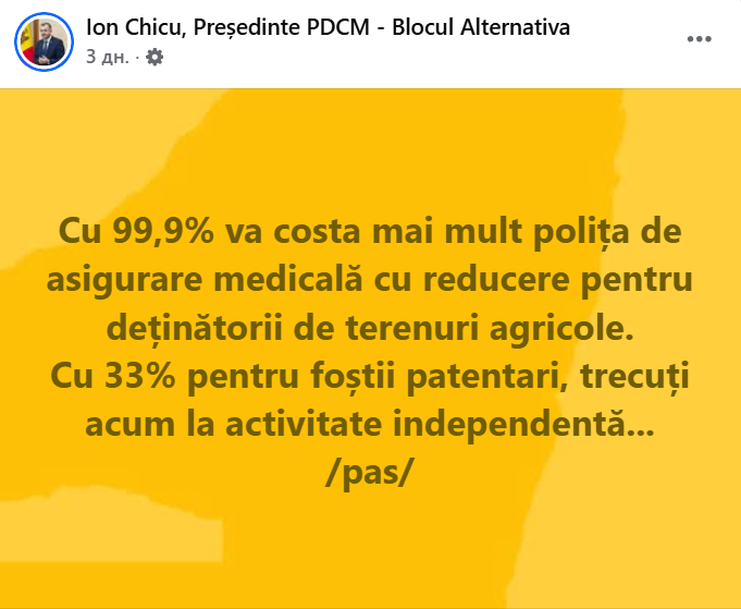 Cu 33% pentru foștii patentari, trecuți acum la activitate independentă... /pas/”, a scris Chicu pe rețele.