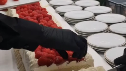 Pe lângă mâncărurile alese, tortul a fost cu totul special. A avut o lungime de 2 metri.