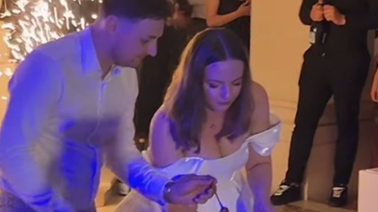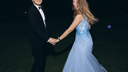 Tinerii au pășit pe un material moale și lucios în timp ce se îndreptau spre locul unde și-au spus jurămintele, în fața invitaților.