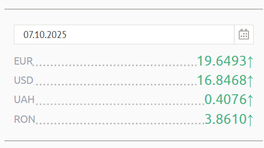 Principalele valute internaționale sunt în creștere, în raport cu leul moldovenesc. Potrivit cursului afișat de Banca Națională a Moldovei, un euro costă astăzi 19 lei și 64 bani, iar un dolar - 16 lei și 84 bani.