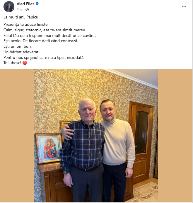 Te iubesc!”, se arată în mesajul de felicitare al lui Vlad Filat.