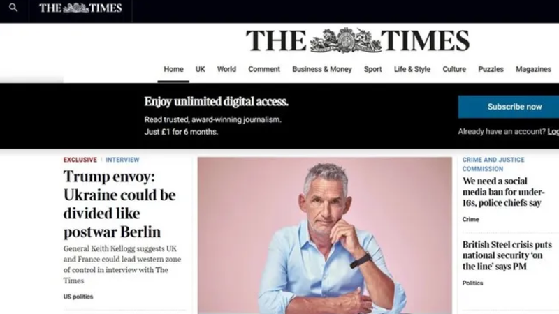„Emisarul lui Trump: Ucraina ar putea fi divizată precum Berlinul după război”, a titrat The Times, informaţia fiind preluată de mai multe publicaţii din lume, inclusiv de presa rusă, scrie News.ro.