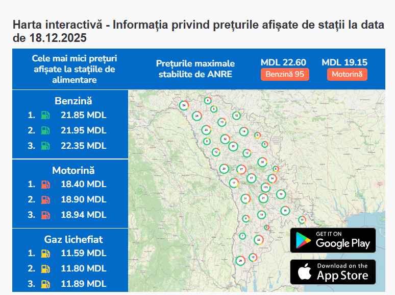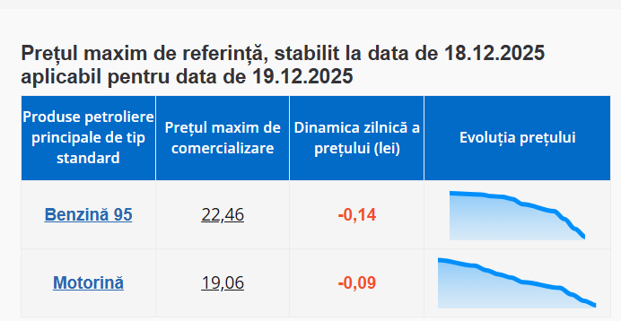 Așadar, litrul de benzină va costa 22,46 lei, iar cel de motorină 19,06 lei.