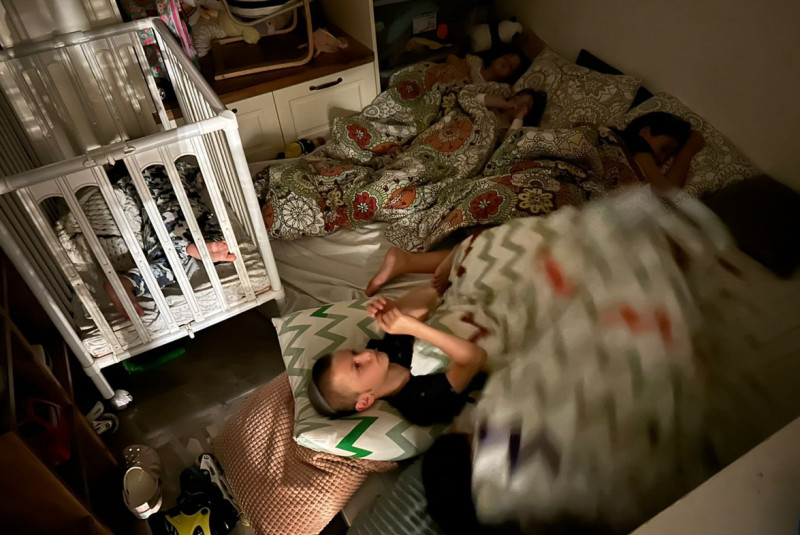 „În prima fotografie, nepoții mei se ascund de rachetele teroriștilor ruși din regiunea Kiev, în primele zile ale teribilei invazii din Ucraina. Ulterior, alături de mii de oameni, i-am evacuat în Israel și Europa.