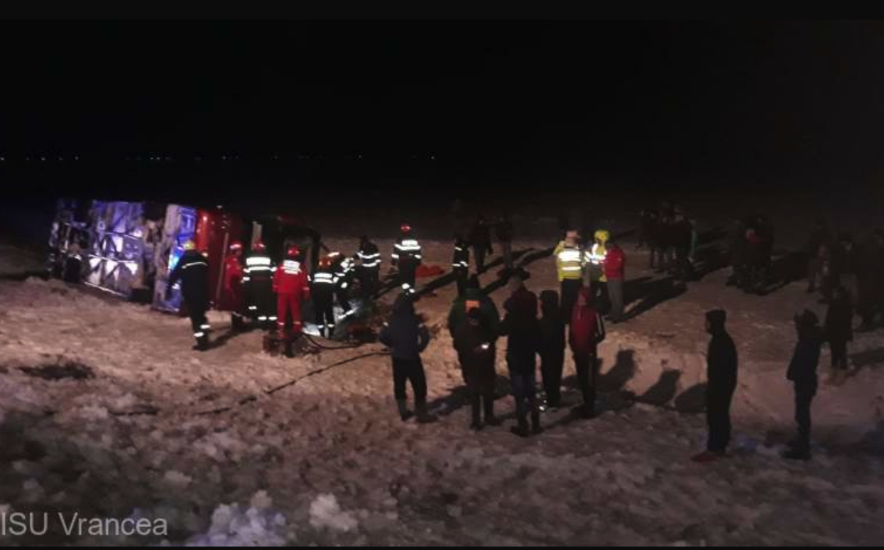 "O persoană a decedat şi alte şase persoane au fost rănite grav, după ce un autocar de călători s-a răsturnat între Haret şi Modruzeni. Autocarul venea din Ungaria, era înmatriculat în Republica Moldova şi mergea la Chişinău. În autocar se aflau 11 pasageri şi trei şoferi. Se pare că GPS-ul i-ar fi deviat pe şoferi de pe E85 către un drum secundar, spre Modruzeni, iar într-o curbă periculoasă, conducătorul auto a pierdut controlul volanului şi s-a răsturnat într-un şanţ", a declarat şeful Poliţiei Rutiere Vrancea, comisar şef Cătălin Stegărescu.