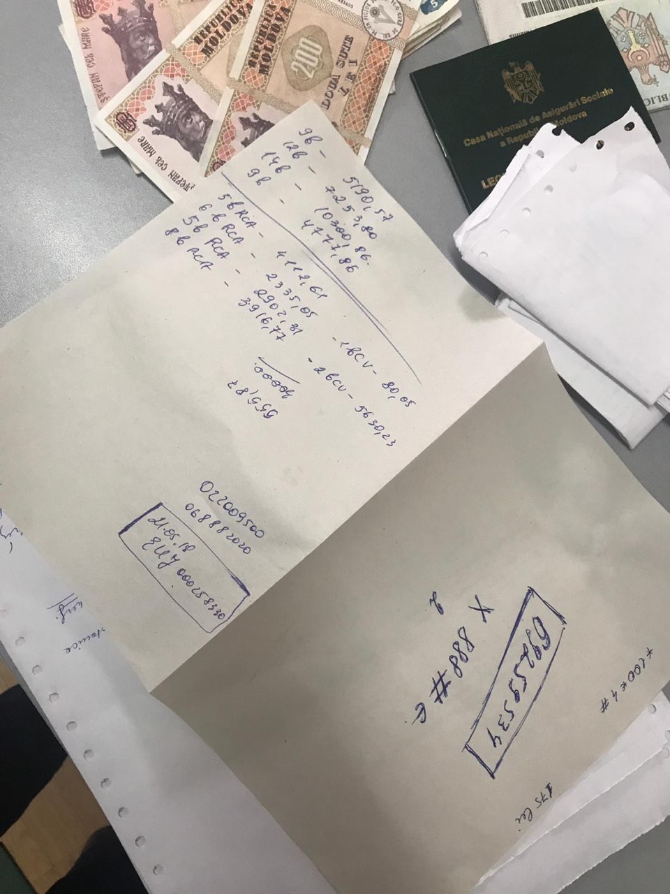 În cadrul perchezițiilor au fost depistate și ridicate certificate de înmatriculare, ordine de plată, rapoarte de inspecție tehnică periodică, contracte de vînzare-cumpărare care conțin semne de falsificare, acte de ciornă, mijloace financiare necontabilizate.