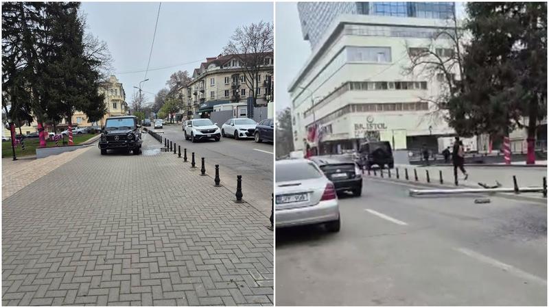 Din imaginile distribuite de internauți pe rețele se observă că automobilul a ajuns pe trotuar, după ce a dat jos câțiva piloni de fier, care delimitatu trotuarul de carosabil, dar și un stâlp.