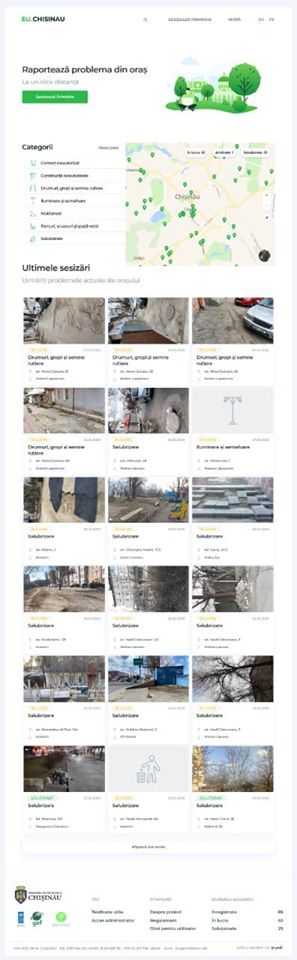 Pe portalul eu.chisinau.md sunt prezentate şi domeniile de intervenție a serviciilor municipale responsabile, numărul sesizărilor la care se lucrează, precum şi cazurile soluţionate.