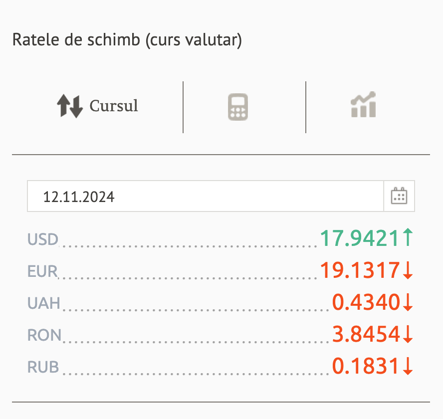 Leul moldovenesc a înregistrat o ușoară depreciere în raport cu dolarul american, ajungând la o valoare de 17.9421 lei pentru un dolar. Diferența față de ziua anterioară este de 1 ban în creștere, reflectând o dinamică de creștere în ultimele două zile.