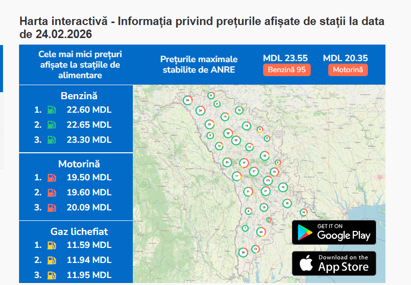 Așadar, litrul de benzină va costa 23,59 lei, iar cel de motorină 20,45 lei.