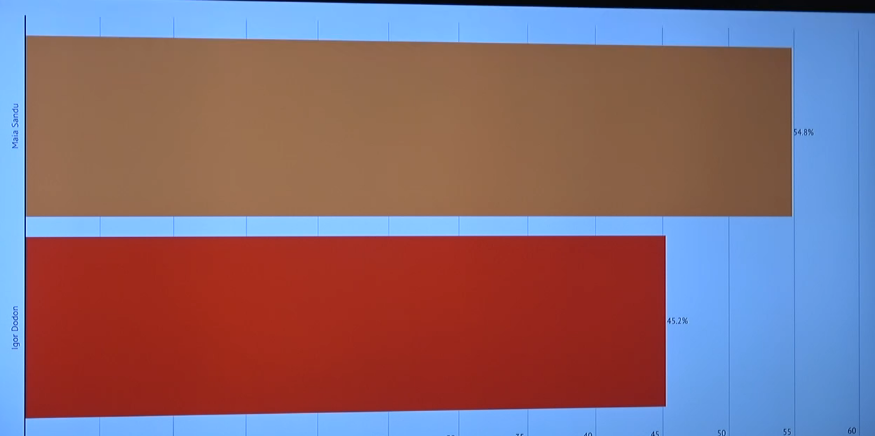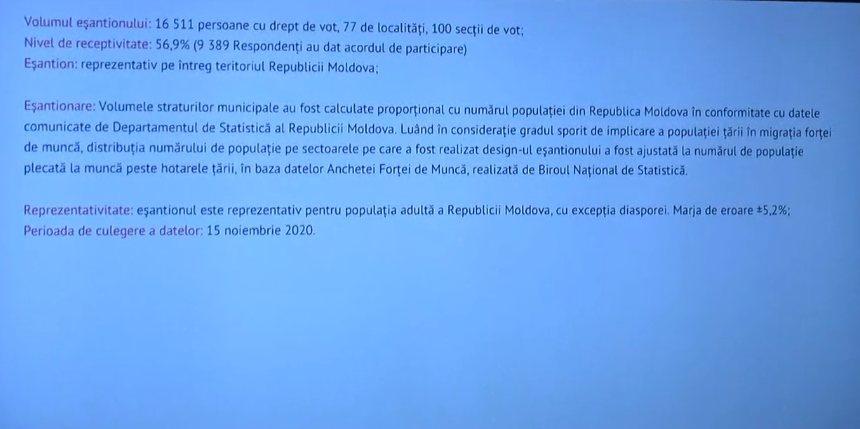 Astfel, potrivit datelor sondajului Maia Sandu ar fi acumulat 54,8 % din numărul total de voturi, iar contracandidatul său Igor Dodon - circa 45,2%.