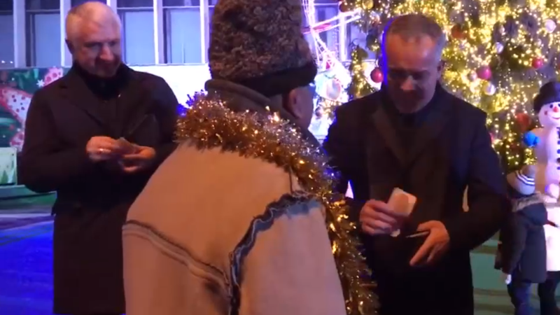 În video se vede cum urătorul găsește pe loc o rimă pentru liderul democrat spre bucuria celor prezenți. La un moment dat, Plahotniuc primește de la Botnari portofelul din care oferă bani urătorului.