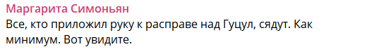 „Toți cei care au contribuit la răfuiala Evgheniei Guțul vor ajunge la închisoare. Cel puțin. Veți vedea”, a cris Simonian.