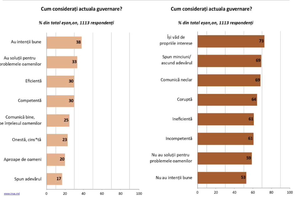 Circa 73% dintre respondenți consideră că actuala guvernare își vede de interese proprii.