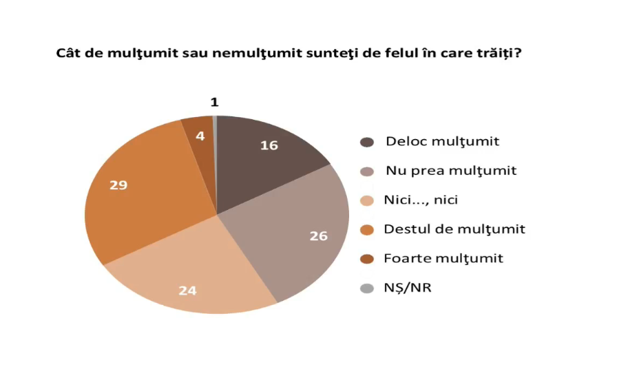 16% dintre respondenți se declară nemulțumiți de felul în care trăiesc, totuși, 29% spun că sunt destul de mulțumiți.