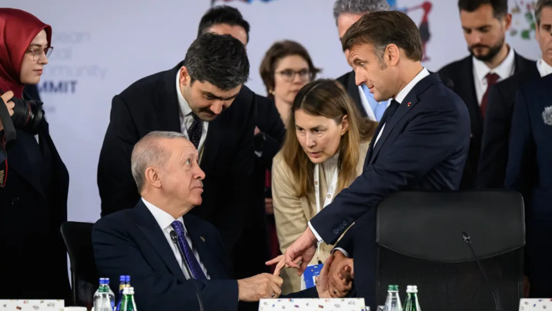 Însă, în momentul în care şi-au slăbit atingerea, preşedintele turc a apucat mai multe degete ale lui Emmanuel Macron, înainte de a păstra în mână doar degetul mijlociu al liderului francez.