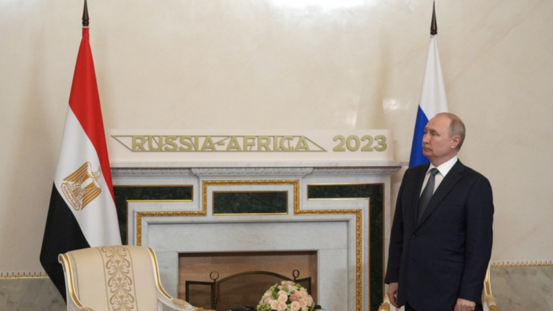 Într-un clip video publicat pe Twitter de Anton Gherașcenko, consilier la ministerul de interne de la Kiev, Putin apare așteptând într-o sală mare cu două fotolii goale în spatele cărora erau puse steagurile Egiptului și Rusiei.