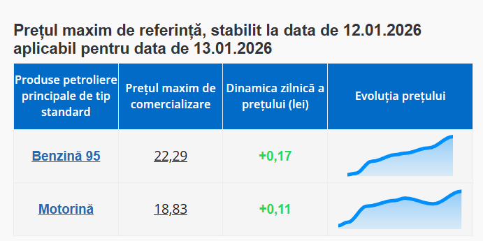 Așadar, litrul de benzină va costa 22,29 lei, iar cel de motorină 18,83 lei.