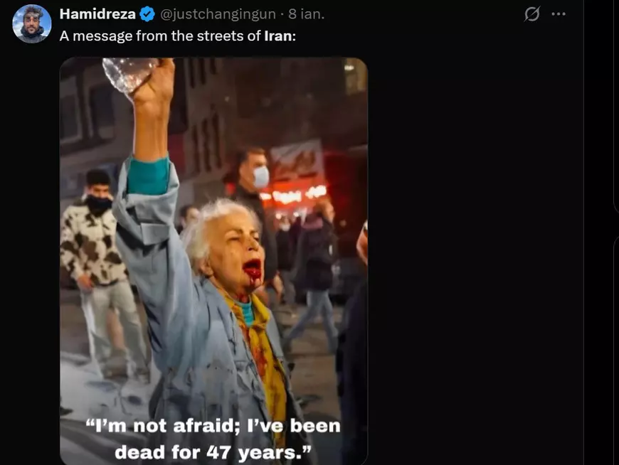 Dacă revolta iraniană ar avea o față, ar putea fi cea a unei femei în vârstă din mijlocul unei mulțimi de protestatari. Cu pumnul ridicat spre cer, cu capul gol, fără batic, ea țipa din gura însângerată de loviturile milițienilor: „Nu mi-e frică. Sunt moartă de 47 de ani!”, scrie Le Figaro.
