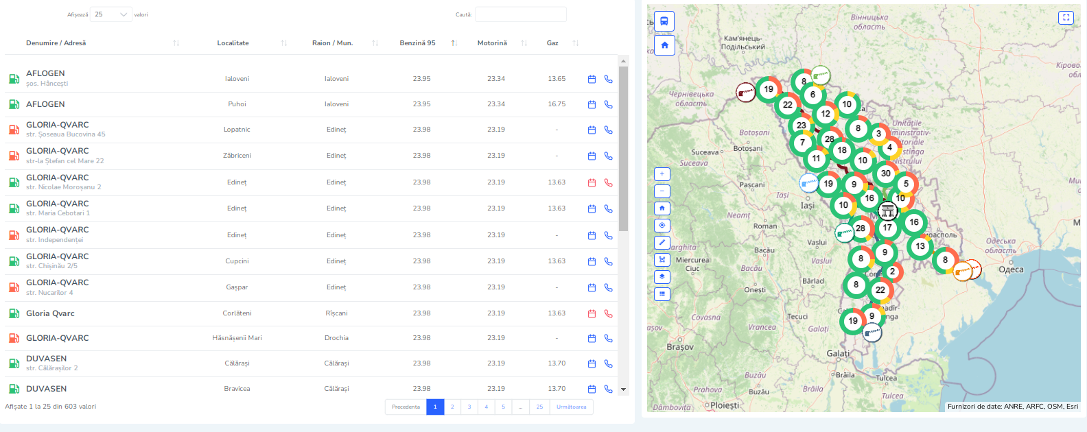 Totodată, cele mai mici prețuri la carburanți le găsiți la benzinării din Ialoveni și Edineț: