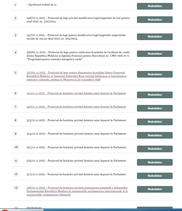 În ordinea de zi s-a inclus proiectul de decizie privind demisionarea din funcția de deputat a lui Ion Ceban, liderul MAN, primarul de Chișinău.