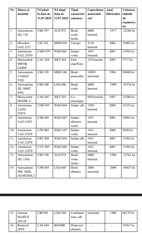 Iată mijloacele de transport scoase la vânzare:
