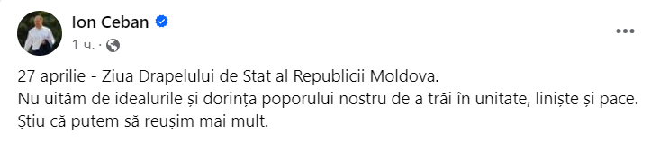 Și fostul șef de stat, Igor Dodon, a venit cu un mesaj de Ziua Drapelului de Stat al Republicii Moldova. „Fie ca poporul moldovenesc să își păstreze identitatea, memoria istorică, tradițiile creștine și coeziunea socială”, a scris ex-președintele țării pe rețele.