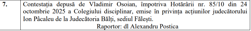 update Plenul examinează, în ședință închisă constestația depusă de Vladimir Osoian:
