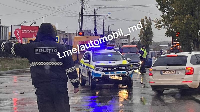 O mașină de poliție a fost distrusă, după un impact pe strada Calea Orheiului din capitală. În regiune s-au format ambuteiaje și se circulă cu dificulate.