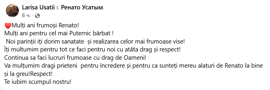 Te iubim scumpul nostru!”, a scris mama lui Renato Usatîi.