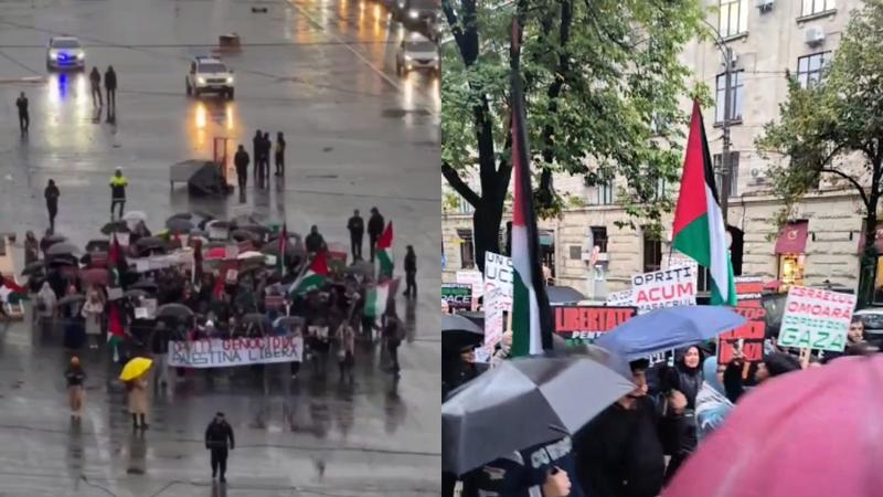 În centrul Chișinăului a avut loc astăzi un miting de solidaritate cu poporul palestinian, la doi ani de la izbucnirea conflictului din Fâșia Gaza. Zeci de persoane au ieșit în stradă, fluturând steaguri ale Palestinei și afișând pancarte cu mesaje precum „Opriți genocidul” și „Palestina liberă”.