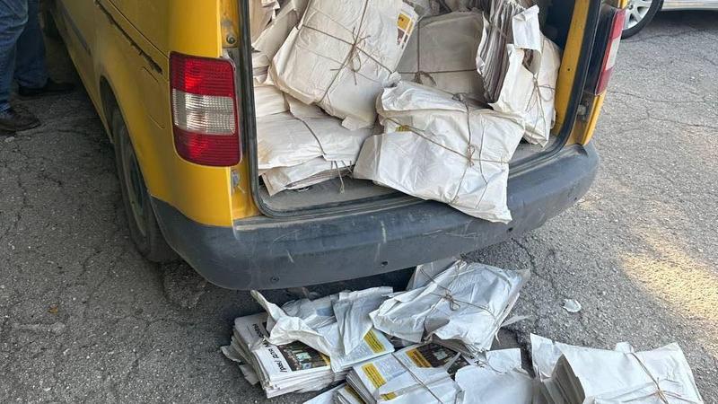 Scandal la Rîșcani, după ce o mașină de la Poșta Moldovei a fost filmată cum transporta, plină ochi, ziare electorale ale PAS.