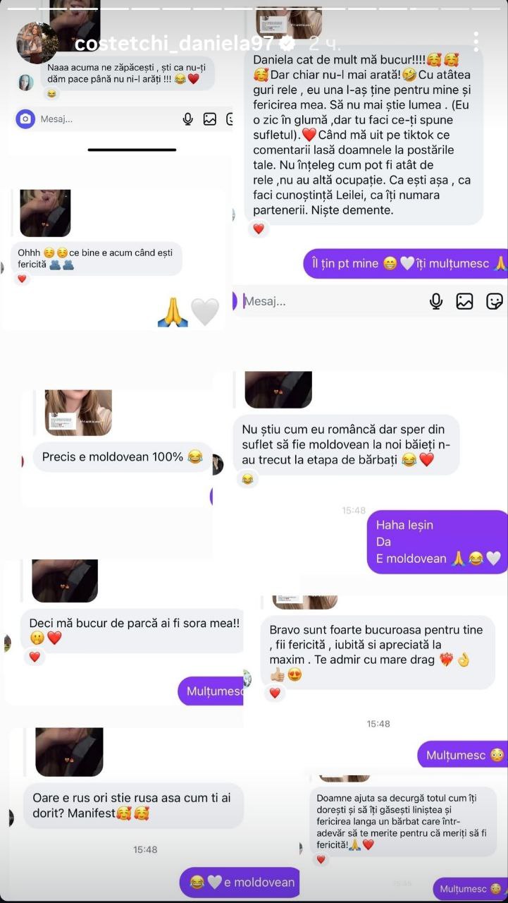 Într-un stories, Daniela a vorbit despre iubire, despre încredere și despre faptul că „există cineva care o face fericită”. Deși nu a dezvăluit încă identitatea noului său partener, ea a spus că nu se grăbește să-l prezinte curând.